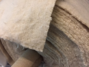 Sarille interlinings are usually 100% polyester and white in appearance. Effectively they are a polyester version of a domette usually coming in weights (300gsm-120gsm). Manufactured by stitching and bonding the fibres together with heat, sarille is very stable compared to bump and domette. It resists stretching, distortion and is far more resistant to shrinkage. (we use Sarille in blinds and light interlined curtains, it is a great chioce for making your first interlined curtains and works very well in interlined roman blinds)