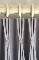 - This is a really good style of curtain for the beginner curtain maker. The tape at the top gives you 3 positions for the hook so you don’t have to worry too much about the getting the length perfect (if you don’t mind them being a cm or so longer than needed). You can make them lined or unlined depending on your needs and they can be machine made for ease or hand stitched if you prefer (not the header tape). The downside with pencil pleat header is that, to look their best, you would require 2.5 x fullness. The implications of this is that you may need more fabric than other header types and this means more space to work on and more fabric to handle which can cause you problems in itself. If you are new to sewing and want simple easy to make curtain, don’t have lots of space to work or time to make them up, then I would consider the Pin hook, header tape curtain. see below