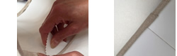 - Use the serrated edge of the packing tool provided to carefully push the excess fabric behind the rings.