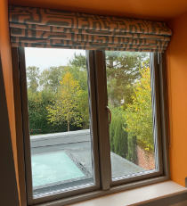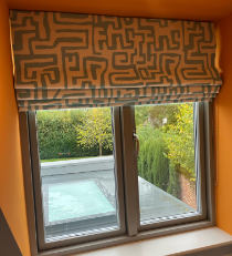 A second picture of a striking blind made by Cecily in 'Abstract'fabric by Bluebellgray