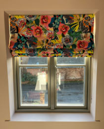 Lovely Roman blind made by Tania, in Funky Flowers fabric from Harlequin.